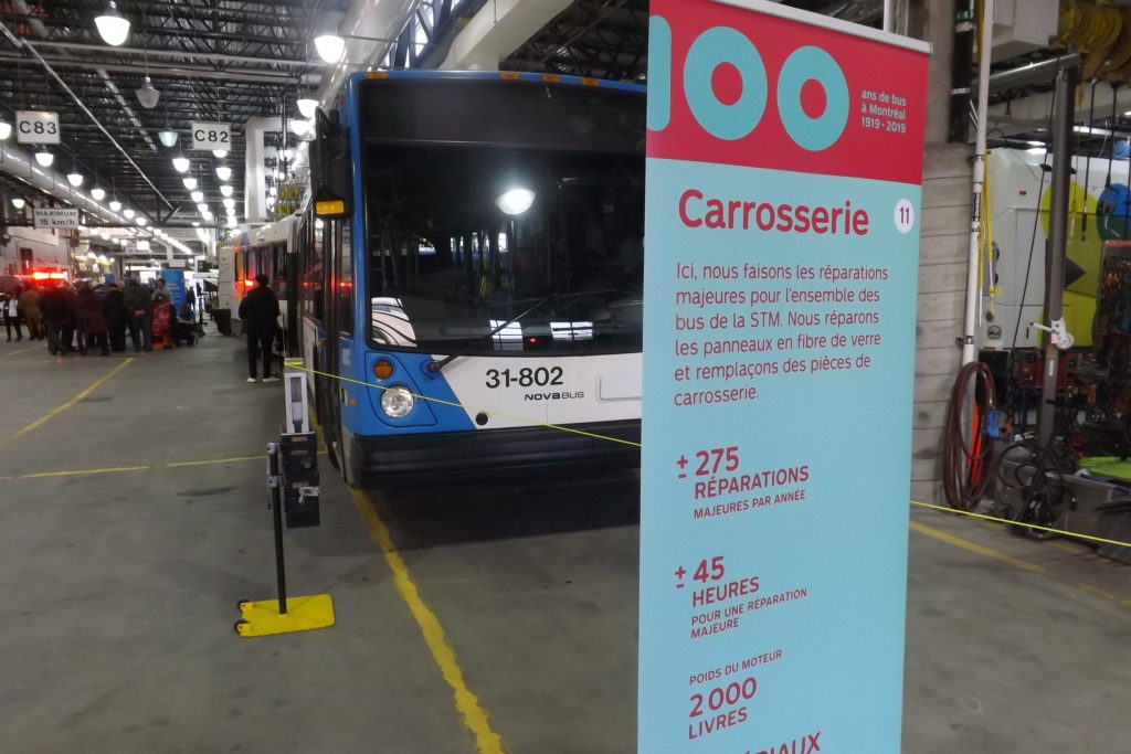 C’est le garage Legendre de la STM situé dans Ahuntsic-Cartierville qui a été choisi pour une journée d’accueil («portes ouvertes») afin de souligner les 100 ans du service d’autobus à Montréal.  Samedi 23 novembre, les employés du garage présents pour faire les présentations étaient visiblement fiers de partager leurs connaissances. Journaldesvoisins.com s’y est rendu.