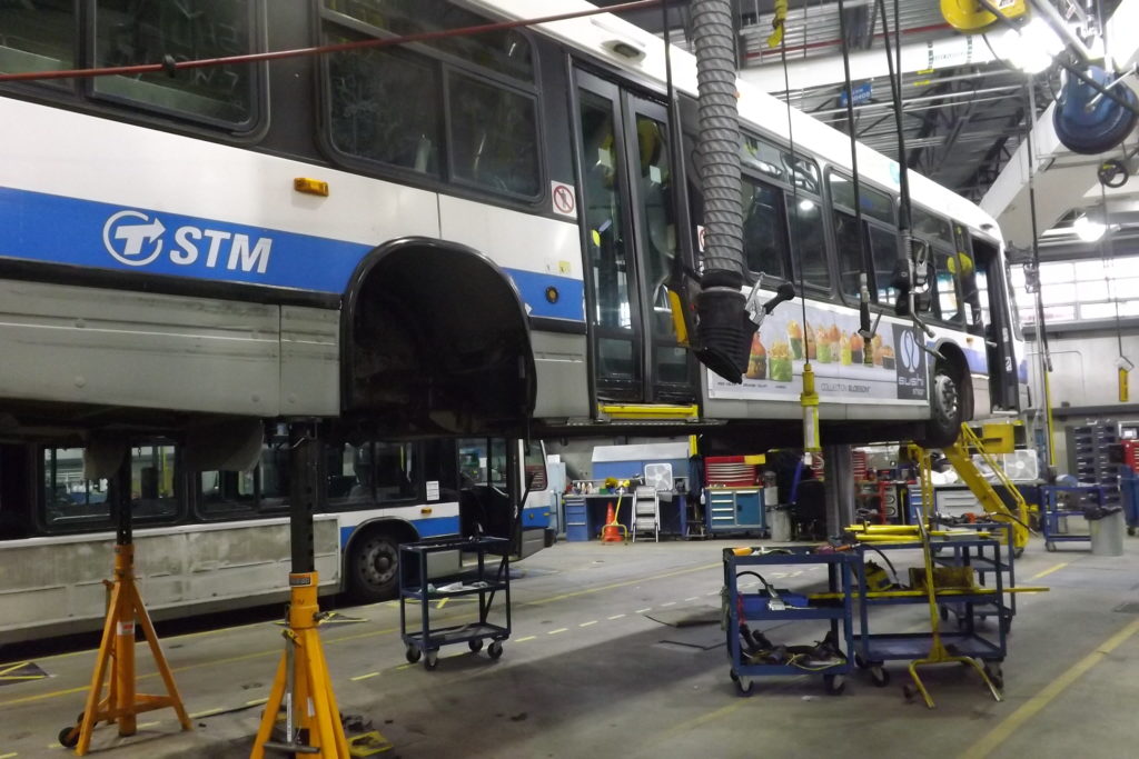 Un autobus qui nécessite des travaux au centre de transport Legendre (Photo : jdv – Philippe Rachiele)