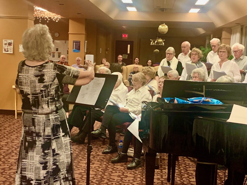 Le 26 novembre dernier, sous la direction de Mme Pierrette Maher, une vingtaine d’aînés de la résidence Les Deux Aires à Ahuntsic-Cartierville ont uni leurs voix pour présenter un concert devant parents et amis.