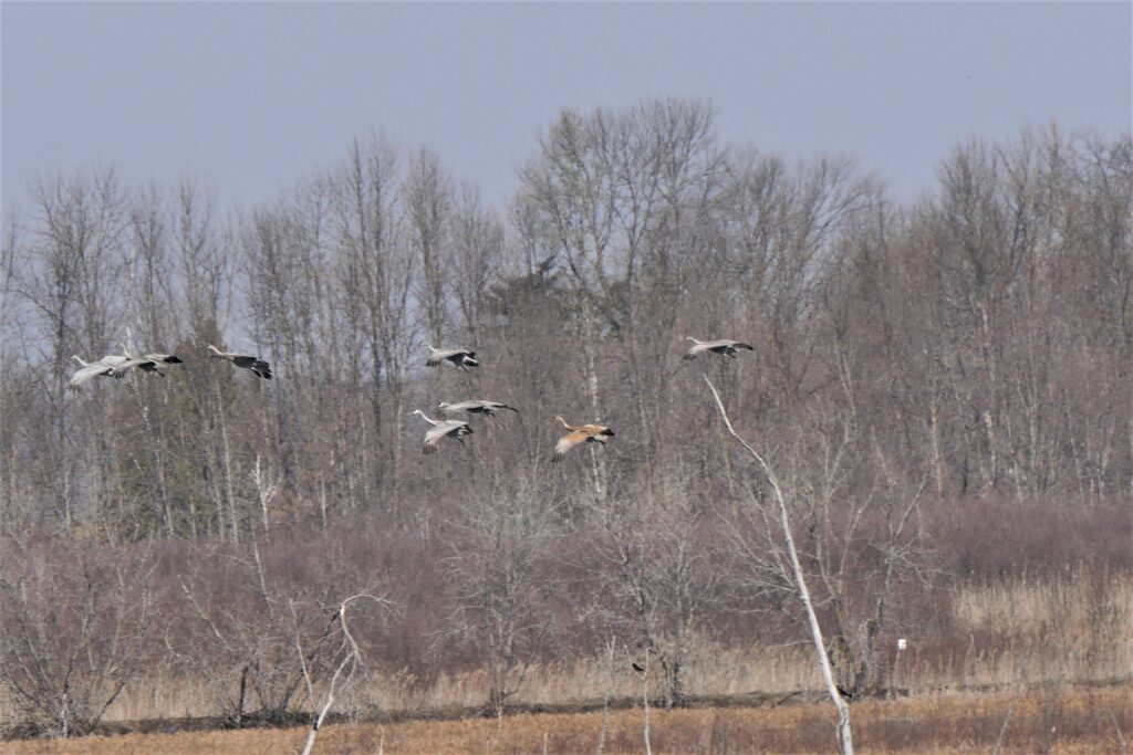 En hiver, les Grues du Canada se retirent au Texas, au Mexique, en Floride et à Cuba. Elles arrivent au Québec à la fin du mois de mars et au début d’avril, et commencent à nicher à la fin d’avril, début de mai. En août et en septembre, elles se rassemblent pour leur migration automnale, les derniers individus nous quittant en octobre.