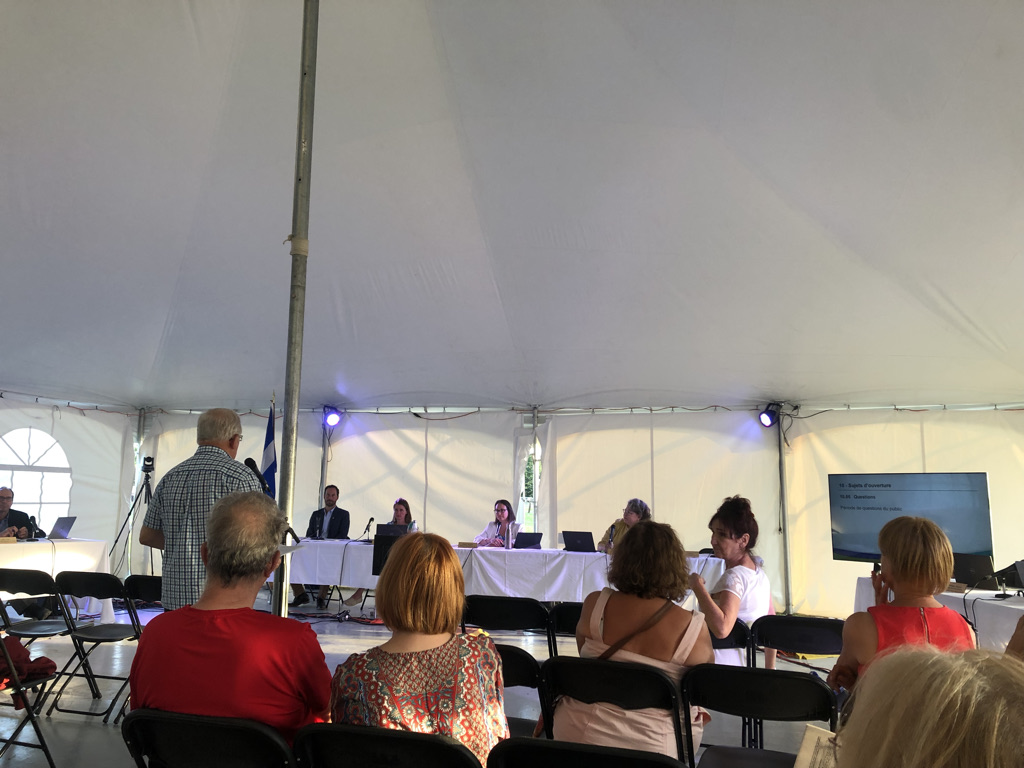 Exceptionnellement, ce conseil d’arrondissement s’est tenu à l’extérieur, au parc des Hirondelles. Dans un chapiteau placé au bas de la colline, de nombreux citoyens, mais aussi des plaisanciers curieux ont assisté à cette séance qui a duré un peu plus de deux heures.