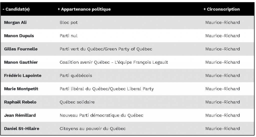 Ci-dessous, les 7 articles individuels du cahier spécial Élections 2018 sur la circonscription de Maurice-Richard