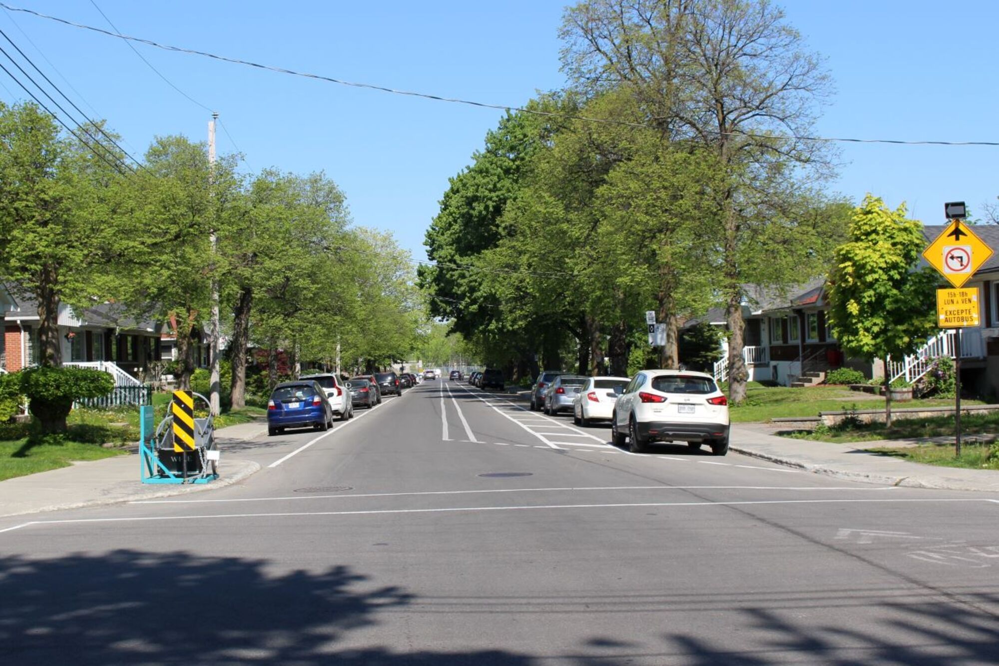 D’autres mesures ont été mises en place : des balises, une piste cyclable et une saillie de trottoir. Par contre, les véhicules – même les autobus – circulent encore trop rapidement, d’après les observations des résidants.