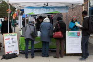 Le Jour de la Terre Québec a collaboré avec le Regroupement des Éco-quartiers afin d‘offrir au public des fêtes de quartier s’inscrivant dans la programmation officielle du 375e. Ville en vert, l’Éco-quartier Ahuntsic-Cartierville, grâce au soutien de la Promenade Fleury et de la Société des célébrations du 375e anniversaire de Montréal, a organisé pour la première fois dans le secteur une grande fête ressemblant plus de 750 résidents à l’occasion du Jour de la Terre. (Source : Ville en vert)
