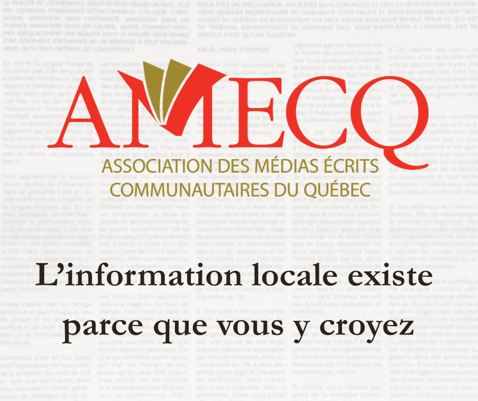 Vous appréciez cette publication du Journal des voisins? Nous avons besoin de vous pour continuer à produire de l’information indépendante de qualité et d’intérêt public. Toute adhésion faite au Journal des voisins donne droit à un reçu fiscal.