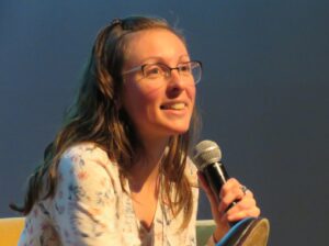 Elle indique, large sourire aux lèvres, que d’après les dizaines de conférences (environ 200) qu’elle a données jusqu’à maintenant, c’est en abordant ce point, assez passionnant pour elle, qu’elle sait si la salle lui est toujours amicale ou non !!!!