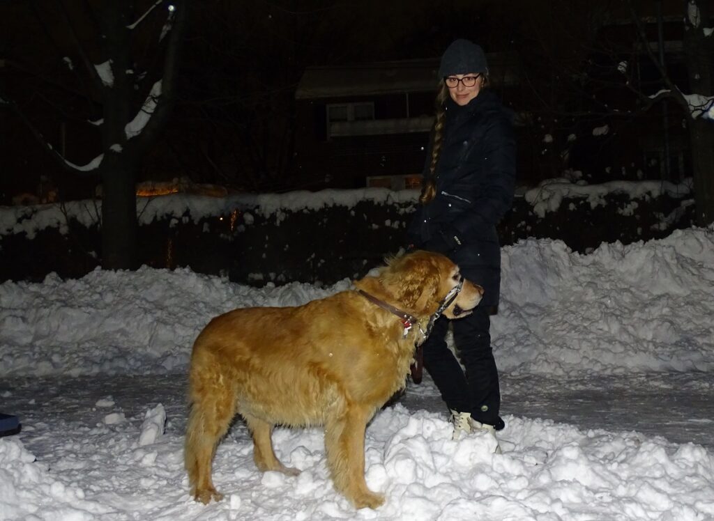 Par contre, elle dit aussi se sentir moins en sécurité lors de ces promenades nocturnes puisque si quelque chose lui arrivait, elle serait plus difficilement secourue (sauf par son chien, rigole-t-elle).
