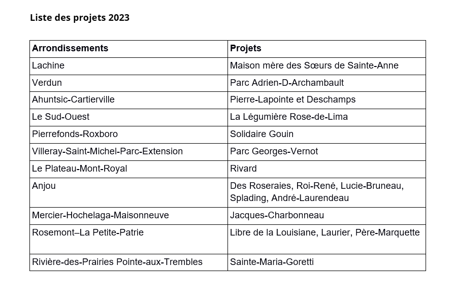 La Ville de Montréal a lancé, dès l’automne dernier, la deuxième année du programme d’aménagement et de réfection des jardins communautaires et collectifs publics pour donner plus de temps aux arrondissements de peaufiner leurs dossiers. Autre amélioration apportée cette année, la Ville pourra, le cas échéant, transférer les sommes non utilisées vers des projets déjà sélectionnés.
