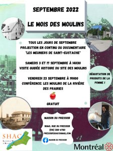 23 septembre 2022 à 19h00 – Conférence moulins de la rivière des Prairies