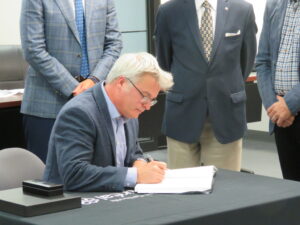 Le fondateur de Ahuntsic en fugue, Clément Canac-Marquis, invité à signer le livre de’or de l’arrondissement en octobre 2017. (Photo: archives jdv)