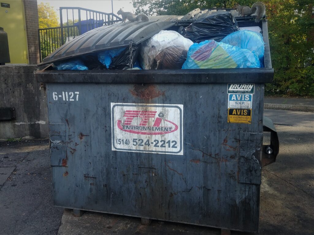 L’arrondissement compte plusieurs conteneurs trop pleins… un régal pour les écureuils! (Photo: Éloi Fournier – JDV)