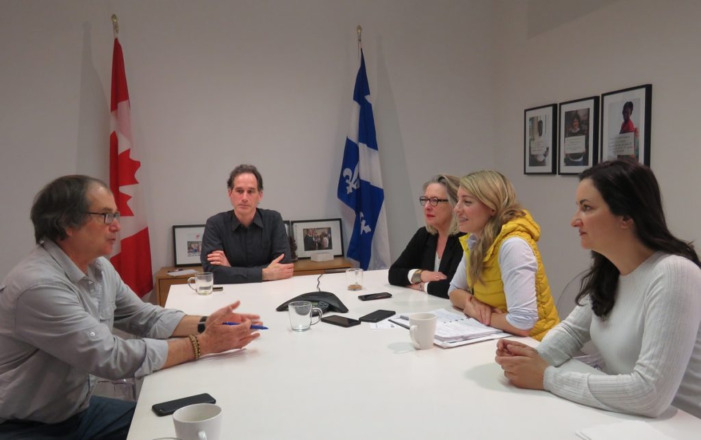 Sur le plan local, la députée fédérale d’Ahuntsic-Cartierville, Mélanie Joly, a tenu le samedi 14 mars une réunion extraordinaire à son bureau de circonscription avec ses collègues Marie Montpetit (députée québécoise de Maurice-Richard) et Christine St-Pierre (députée québécoise de l’Acadie), avec, à l’autre bout du fil (pour cause d’un vilain rhume), la mairesse de l’arrondissement d’Ahuntsic-Cartierville, Émilie Thuillier, qui était toutefois représentée sur place par le directeur de cabinet du Bureau des élu(e)s, Jean-François Desgroseilliers.