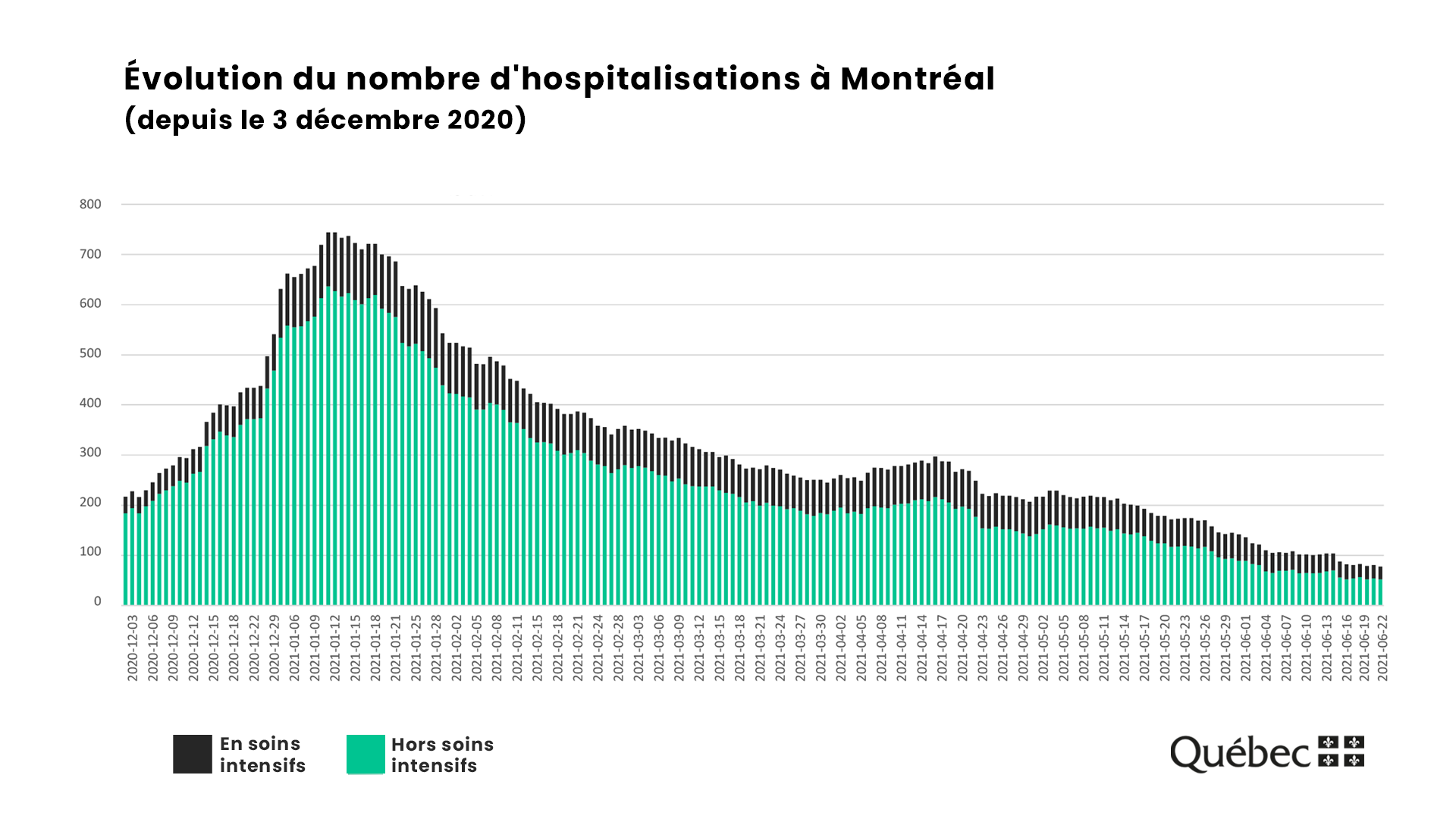 Selon les données du ministère de la Santé et des Services sociaux (MSSS), 13 personnes étaient toujours hospitalisées à l’hôpital Sacré-Cœur en date du 23 juin, dont cinq aux soins intensifs.