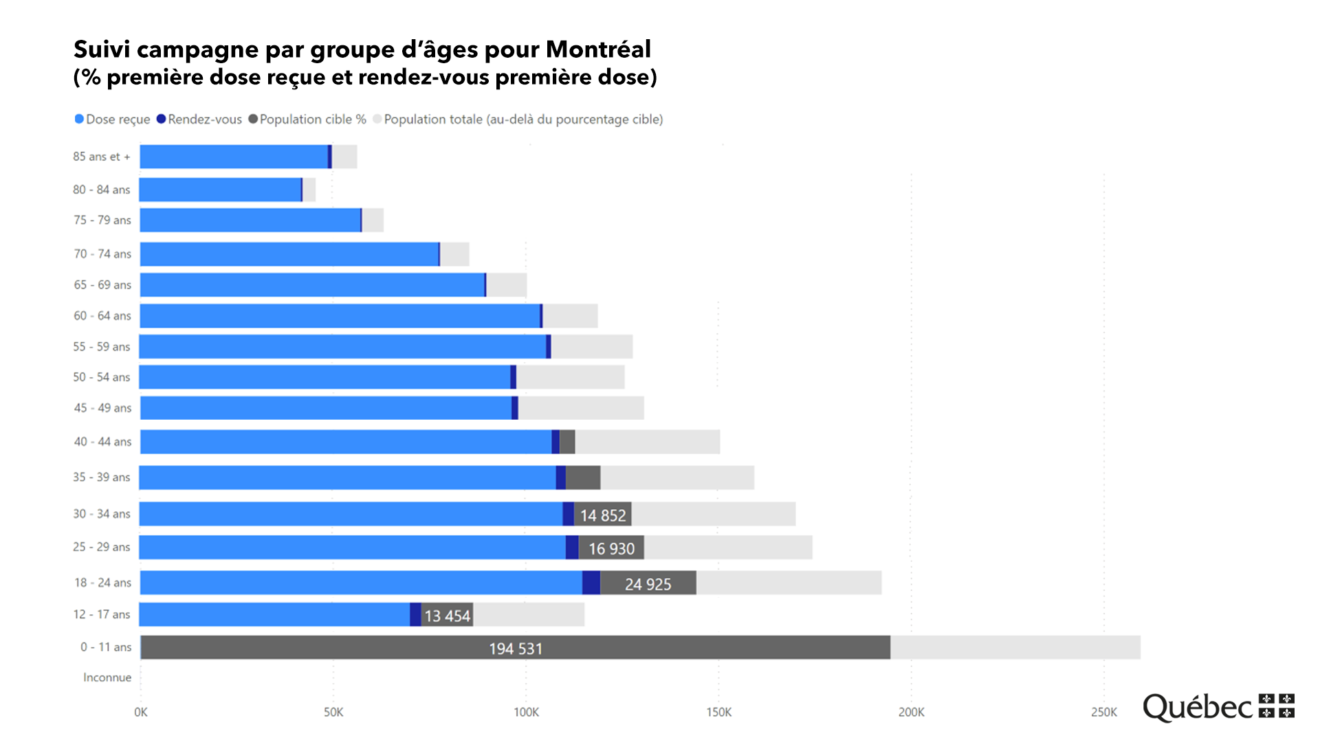 À 72,9 % de couverture à au moins une dose, les 50-59 ans approchent de l’objectif. Les 40-49 ans suivent avec 68,9 % de couverture, mais on demeure loin du compte chez les 20 à 40 ans qui affichent des taux de couverture de moins de 60 %.