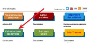 La Ville-centre rappelle aussi aux citoyens qu’il est important de prévenir les autorités compétentes lorsque l’on rencontre un coyote, surtout si celui-ci se montre agressif.