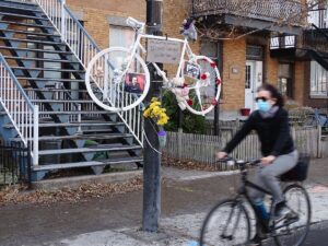 Cet événement n’est pas sans rappeler la collision entre un vélo et une automobile ayant causé le décès du cycliste Clément Bazin. Ce tragique accident a eu lieu en septembre 2018 à l’intersection Lajeunesse et Crémazie, zone désormais protégée par le REV. Les membres du collectif Vélo fantôme Montréal présents à l’inauguration ont d’ailleurs déposé des fleurs auprès des trois vélos blancs disposés sur le parcours en mémoire des cyclistes victimes d’accidents de la route.