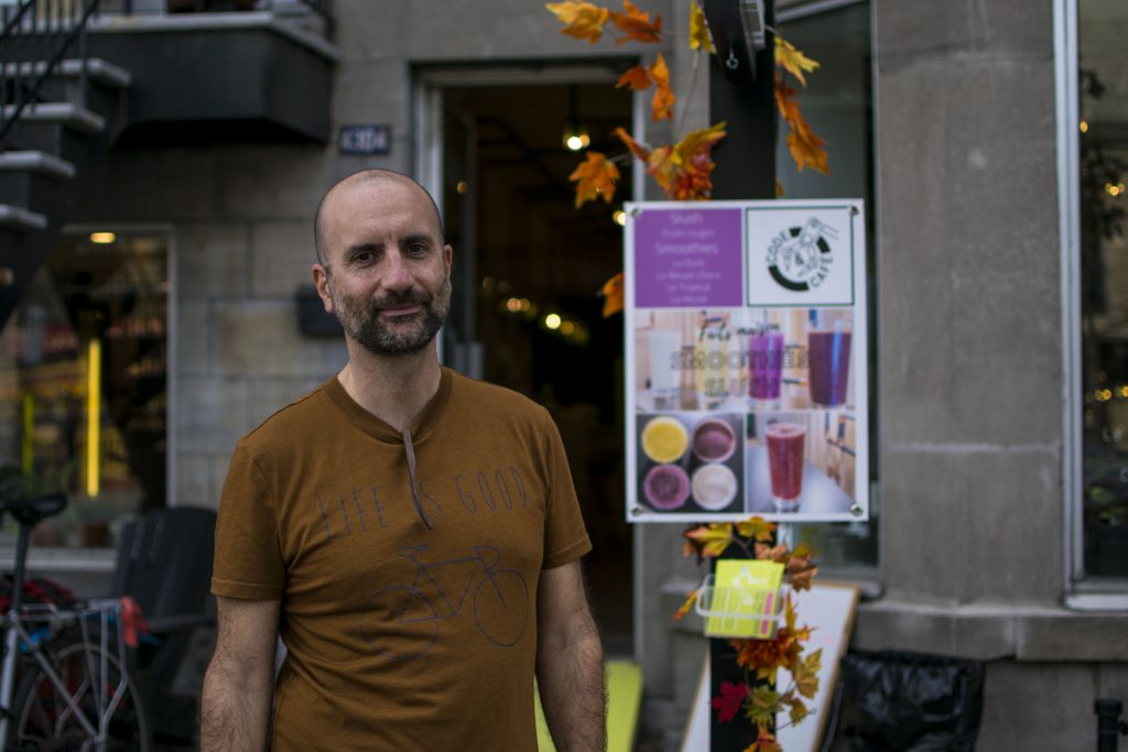 Laurent St-Cyr du Club Expresso Bar sur la rue Saint-Denis, l’après-midi de l’événement (Photo : Carla Geib)
