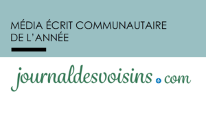 À l’occasion du gala virtuel de l’Association des médias écrits communautaires du Québec (AMECQ), Journaldesvoisins.com a été nommé le média de l’année 2020 parmi tous les médias communautaires du Québec. En outre, le JDV a raflé trois premiers prix et une mention (deuxième prix).