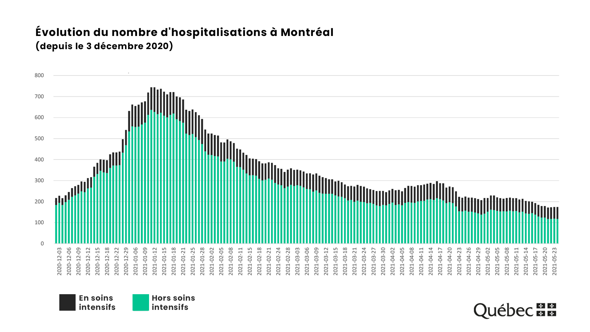 Au chapitre des hospitalisations liées à la COVID-19, Sacré-Cœur demeure parmi les hôpitaux les plus sollicités dans la province, en particulier en ce qui concerne les soins intensifs. Sur 18 patients hospitalisés à Sacré-Cœur en date de jeudi, 13 étaient aux soins intensifs, soit la plus forte proportion dans l’ensemble du réseau hospitalier au Québec.