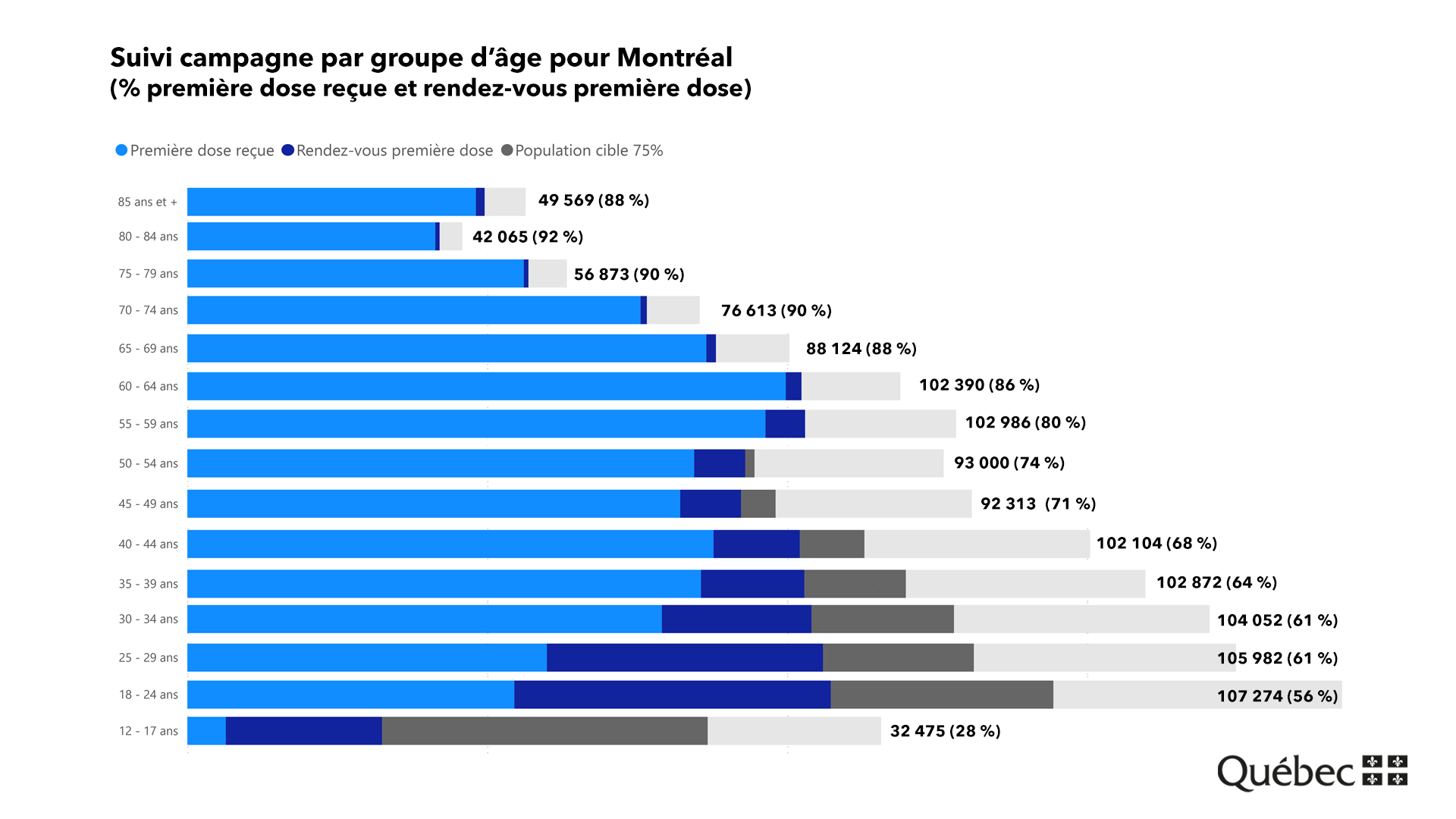 Elle souligne que les moins de 40 ans à qui la vaccination a été ouverte récemment répondent à l’appel, mais qu’on observe une certaine « stagnation » chez les 40-45 ans qui sont admissibles à la vaccination depuis le 5 mai.