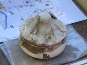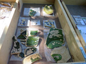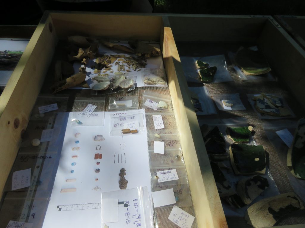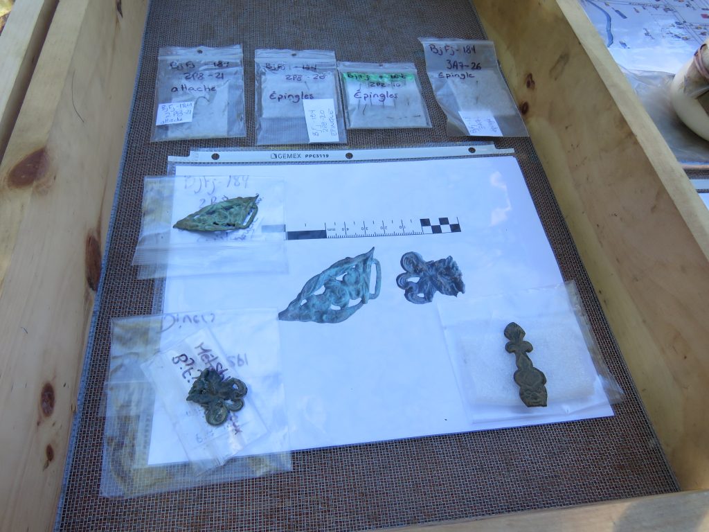 Les fouilles ont permis également de mettre au jour une riche collection d’artefacts de la fin du XVIIe siècle et du début du XVIIIe siècle, dont des céramiques caractéristiques, des fragments de pipe à fumer, un élément de métal cuivreux pouvant être associé à la transformation d’un chaudron en objets prisés par les autochtones et des perles de traite de toutes sortes.