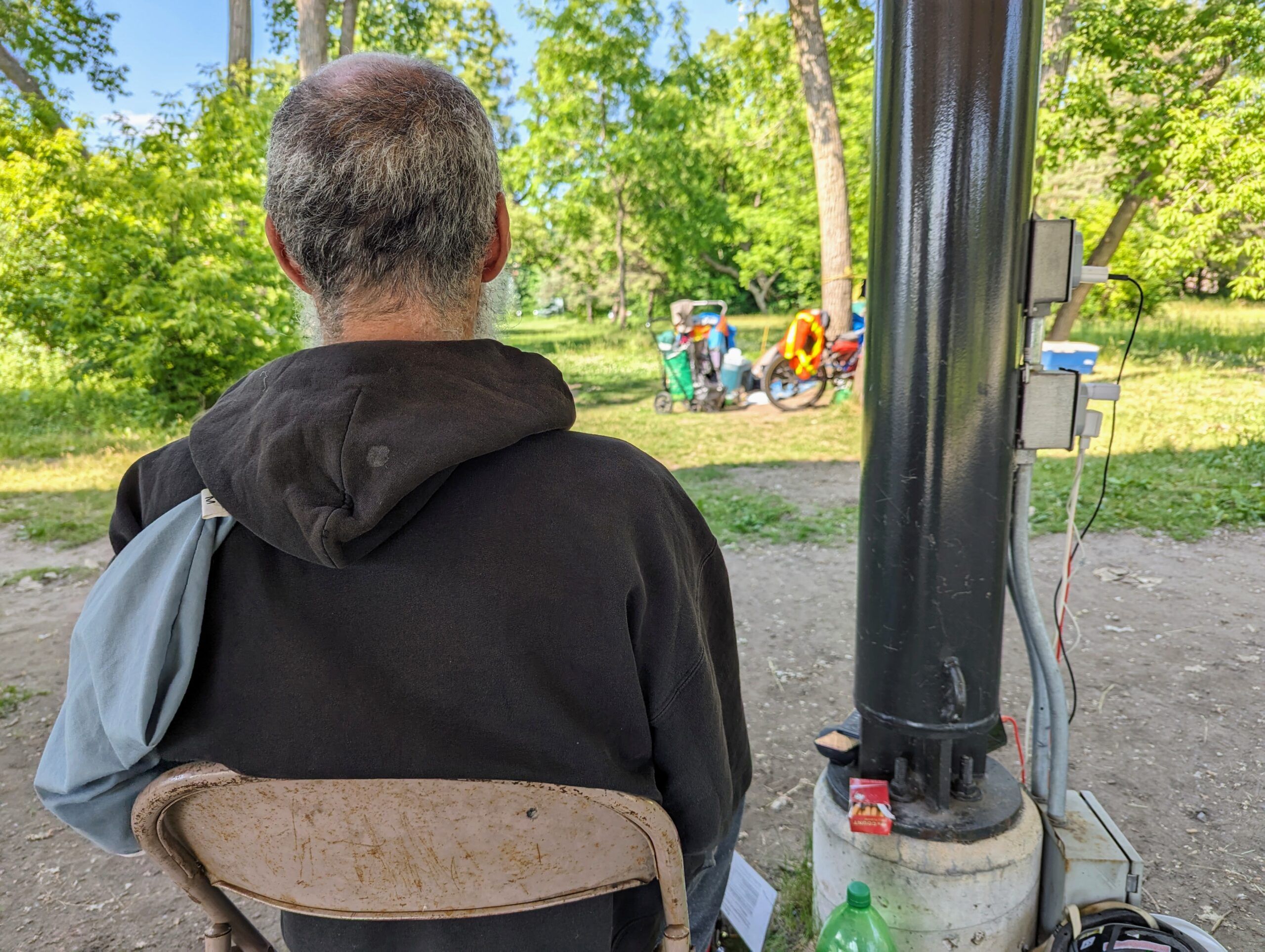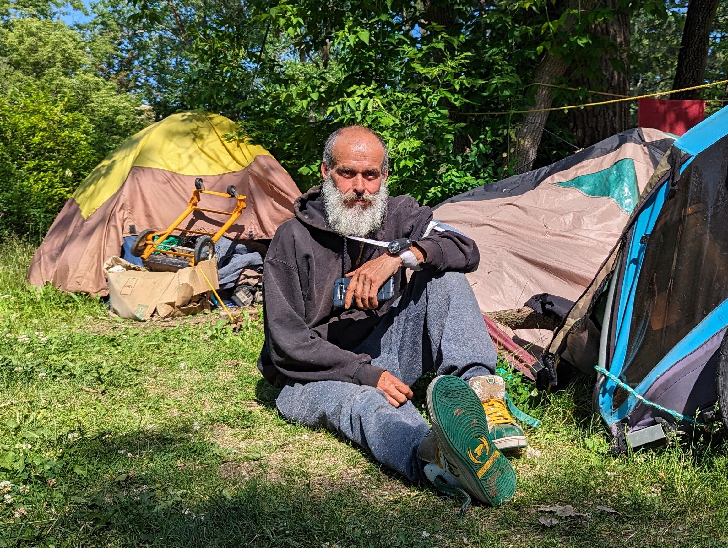 Le soleil se reflète sur le clapotis de la rivière des Prairies, les oiseaux chantent, les fleurs embaument, des rires d’adolescents se font entendre… tous les signes d’une fin de journée estivale et douce. C’est pourtant dans ce cadre idyllique du parc Basile-Routhier, à Ahuntsic-Cartierville, que se joue une nouvelle situation dramatique pour les quelques personnes en situation d’itinérance qui y avaient trouvé refuge. Le Journal des voisins est allé à leur rencontre avant leur éviction prévue ce jeudi matin.