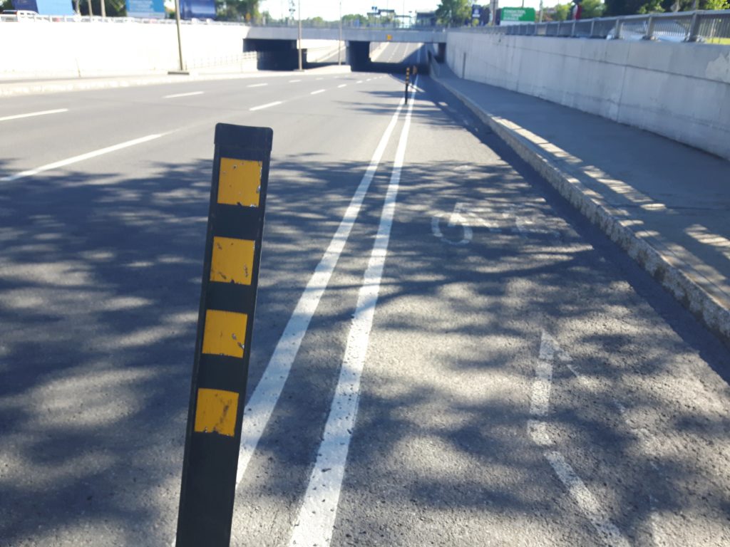 Les cyclistes qui utilisent cette voie cyclable doivent espérer que ce nouveau programme de nettoyage va bien se dérouler et fera boule de neige sur les autres voies artérielles munies de bollards, même l’été!