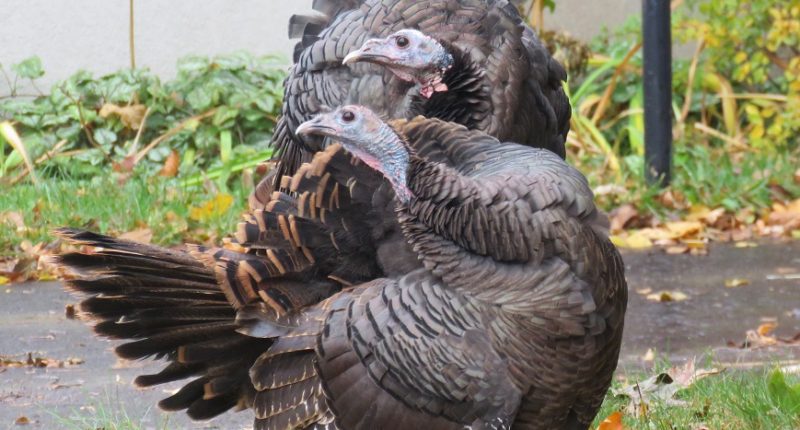 Près des habitations, les dindons peuvent aussi être attirés par les sources de nourriture comme les graines tombées au sol, sous les mangeoires d’oiseaux.