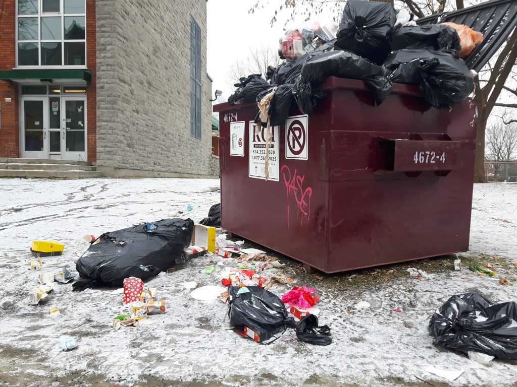 Les riverains de l’école St-André-Apôtre sur l’avenue de l’Esplanade ont en eu plein la vue pendant les vacances des Fêtes. Malheureusement, leur champ de vision ne fut pas les décorations de Noël environnantes, mais bien la benne d’ordures débordantes qui a sans doute attiré vermine et coyotes, pendant les deux semaines qu’a duré le récent congé des Fêtes. Explications.