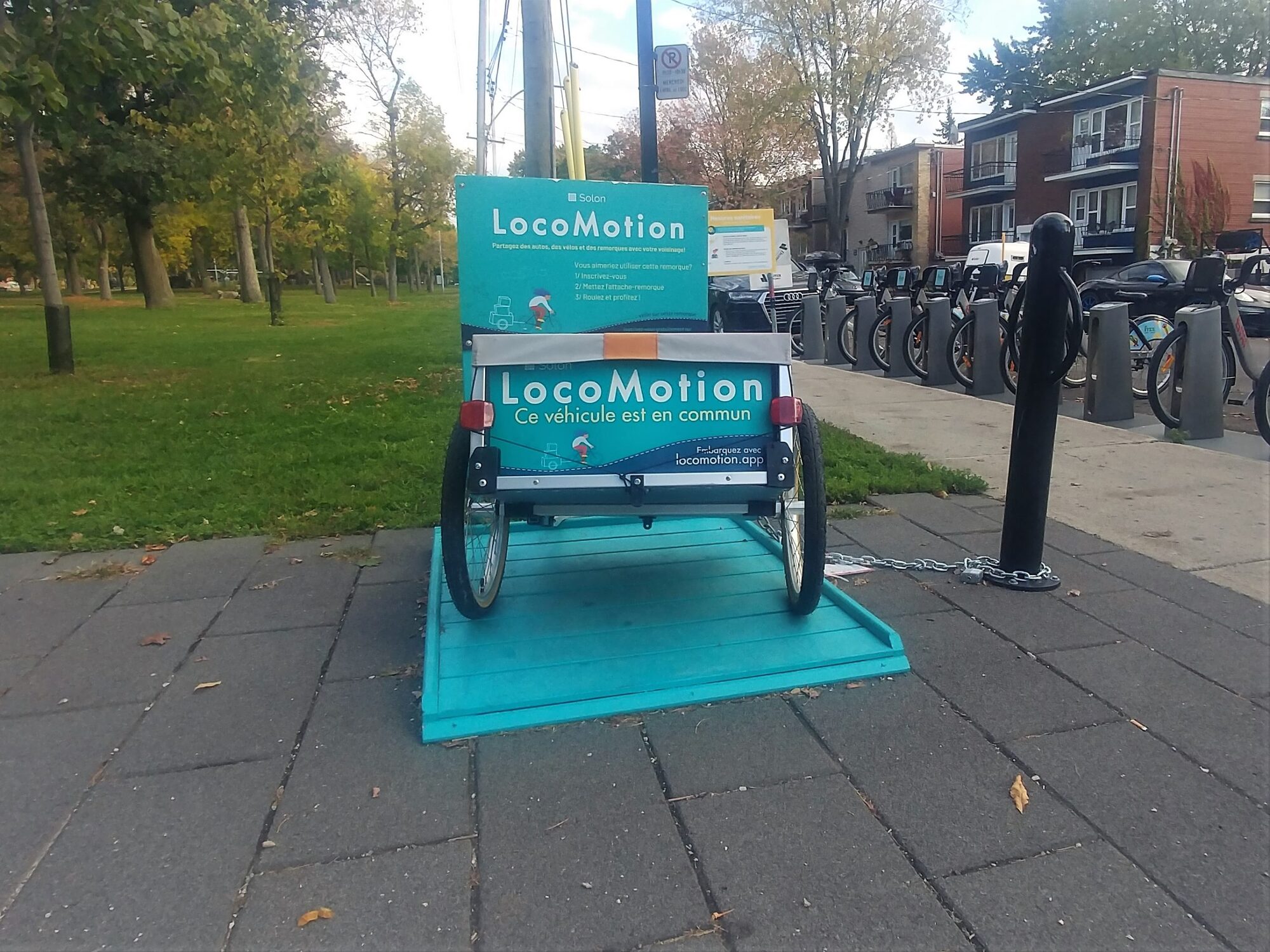 LocoMotion est né en 2017 dans Rosemont–La Petite-Patrie et offre non seulement la possibilité à des voisins de partager une voiture, mais aussi un vélo cargo, un vélo électrique et une remorque à vélo.