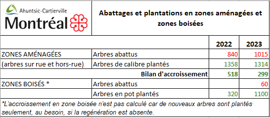 JDV : Combien d’arbres ont été abattus et plantés en 2022 et 2023 dans l’arrondissement?