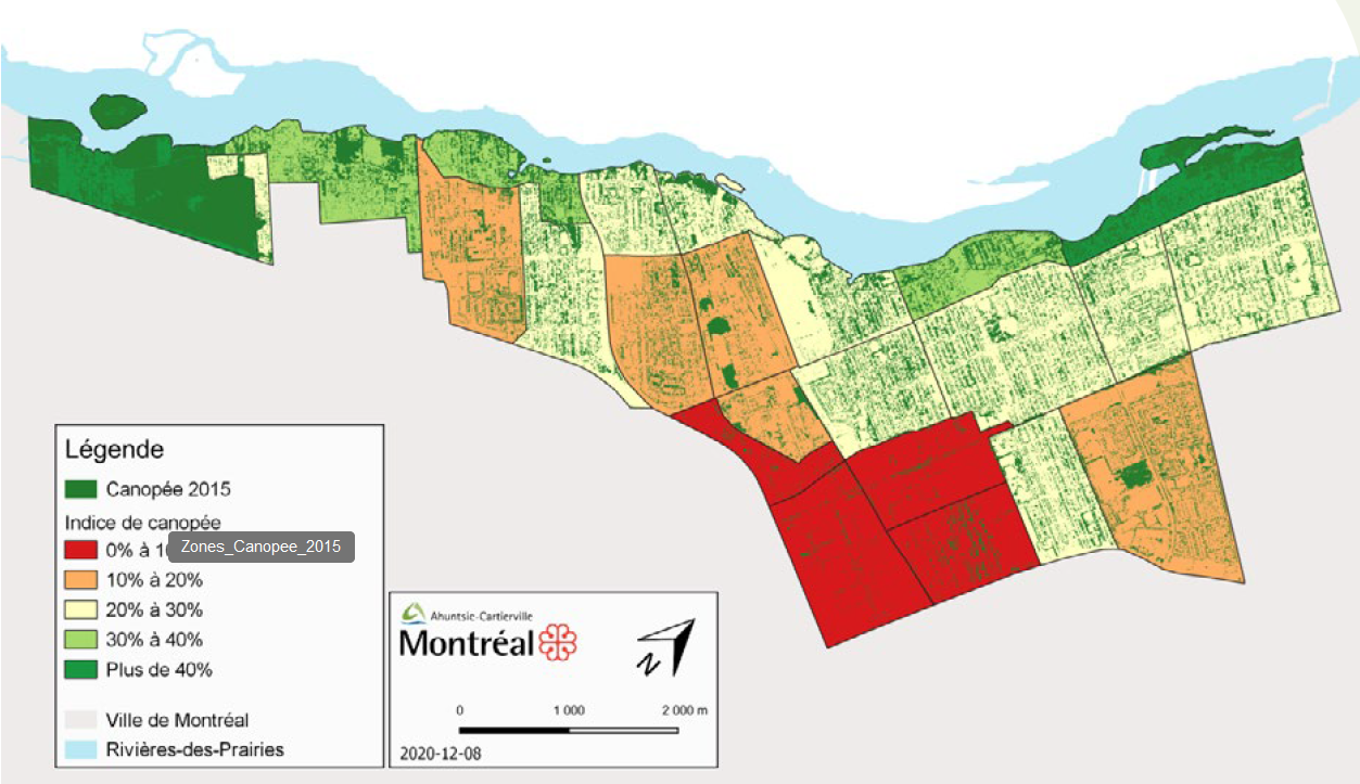 Il y a un objectif de faire passer l’indice de canopée sur le territoire d’Ahuntsic-Cartierville de 24 % à à 30 % d’ici 2045.