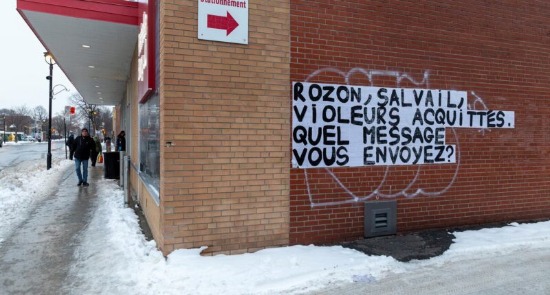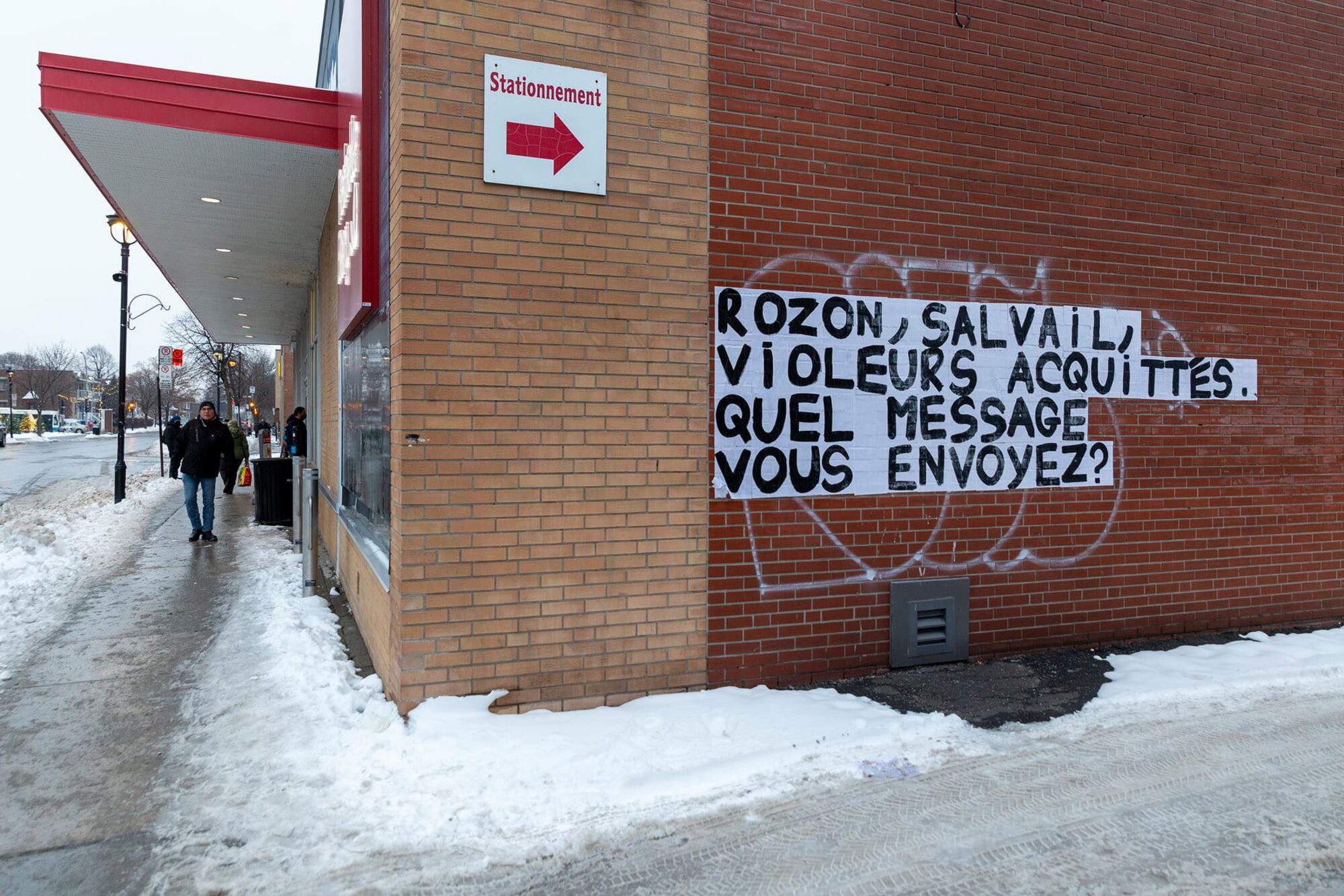 « ROZON, SALVAIL, VIOLEURS ACQUITTÉS, QUEL MESSAGE VOUS ENVOYEZ? », « JUSTICE POUR RIRE », « SOS VIOLENCE CONJUGALE 1-800-963-9010 », voilà des messages qui ont été affichés, collés sur des murs, à quelques endroits sur la rue Fleury récemment.