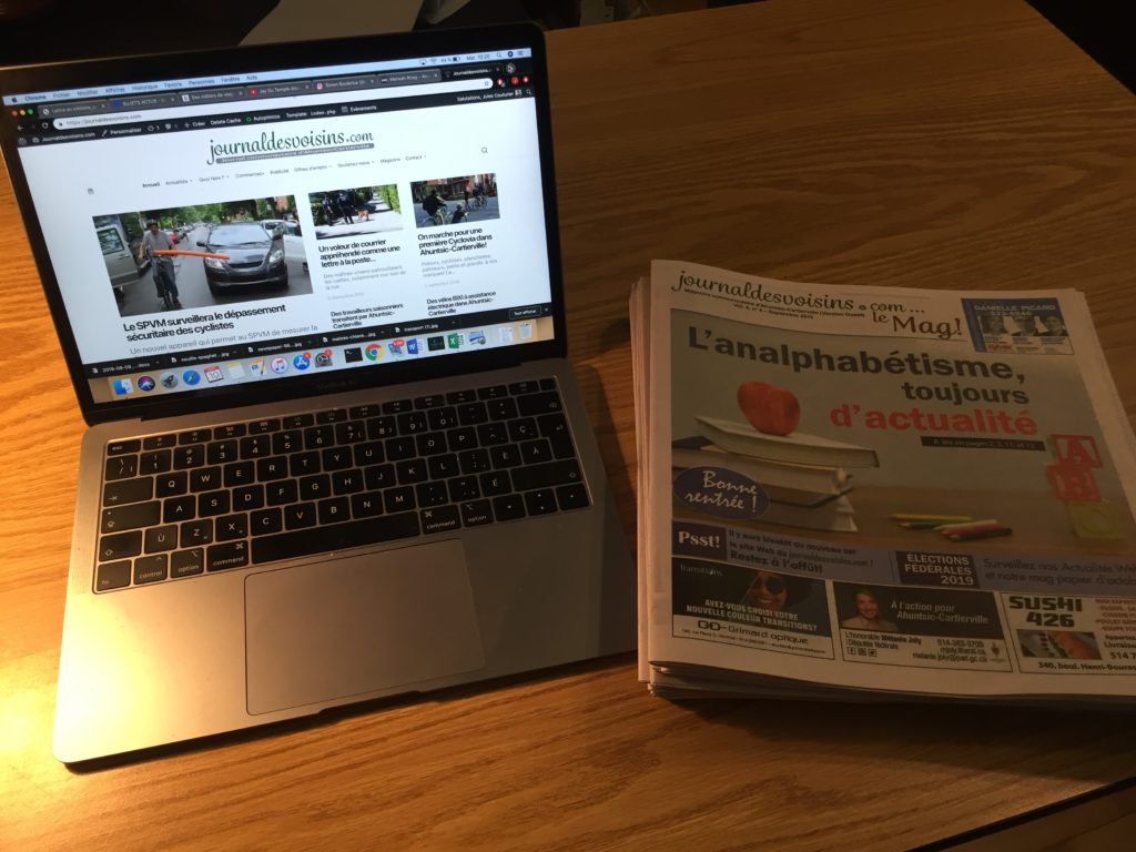 Journaldesvoisins.com se décline en deux supports: les Actualités Web sur mobile, tablette et ordi; et le mag papier bimestriel. Photo: Jules Couturier (jdv)