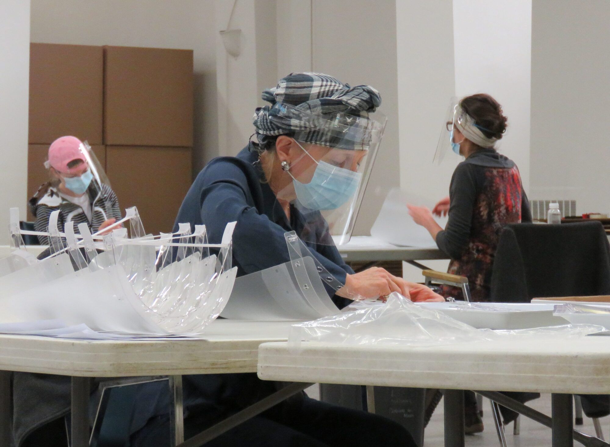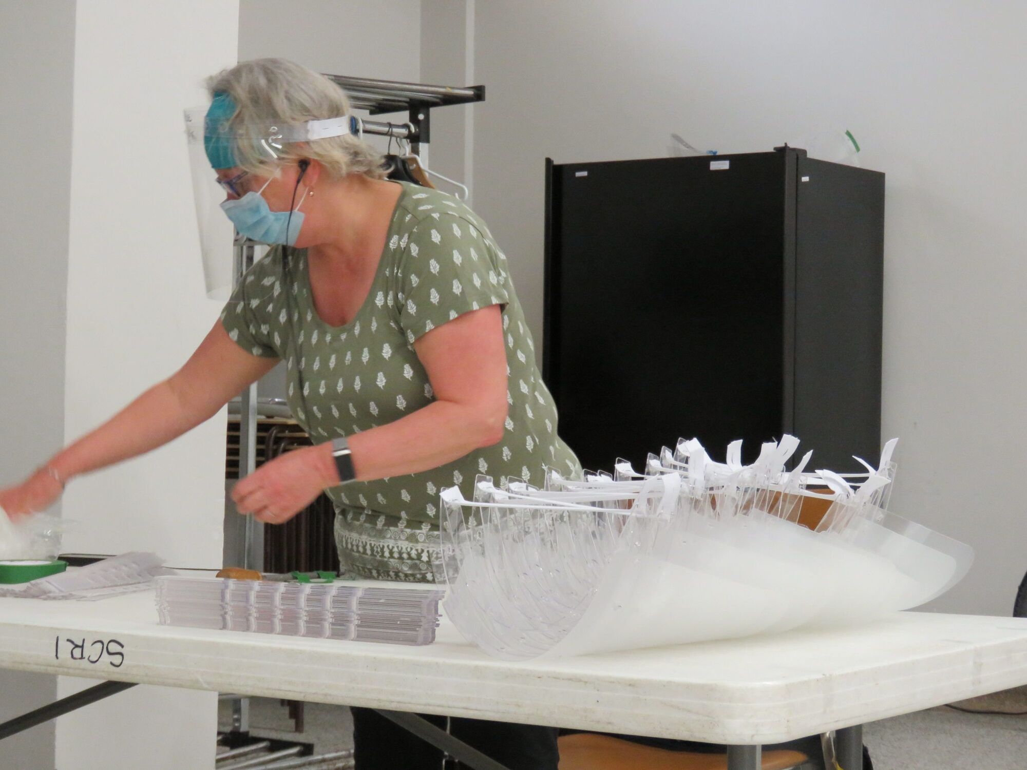Le groupe est à l’œuvre environ trois demi-journées par semaine. Une fois leur vitesse de croisière atteinte, ils peuvent produire 600 visières par quart de travail.