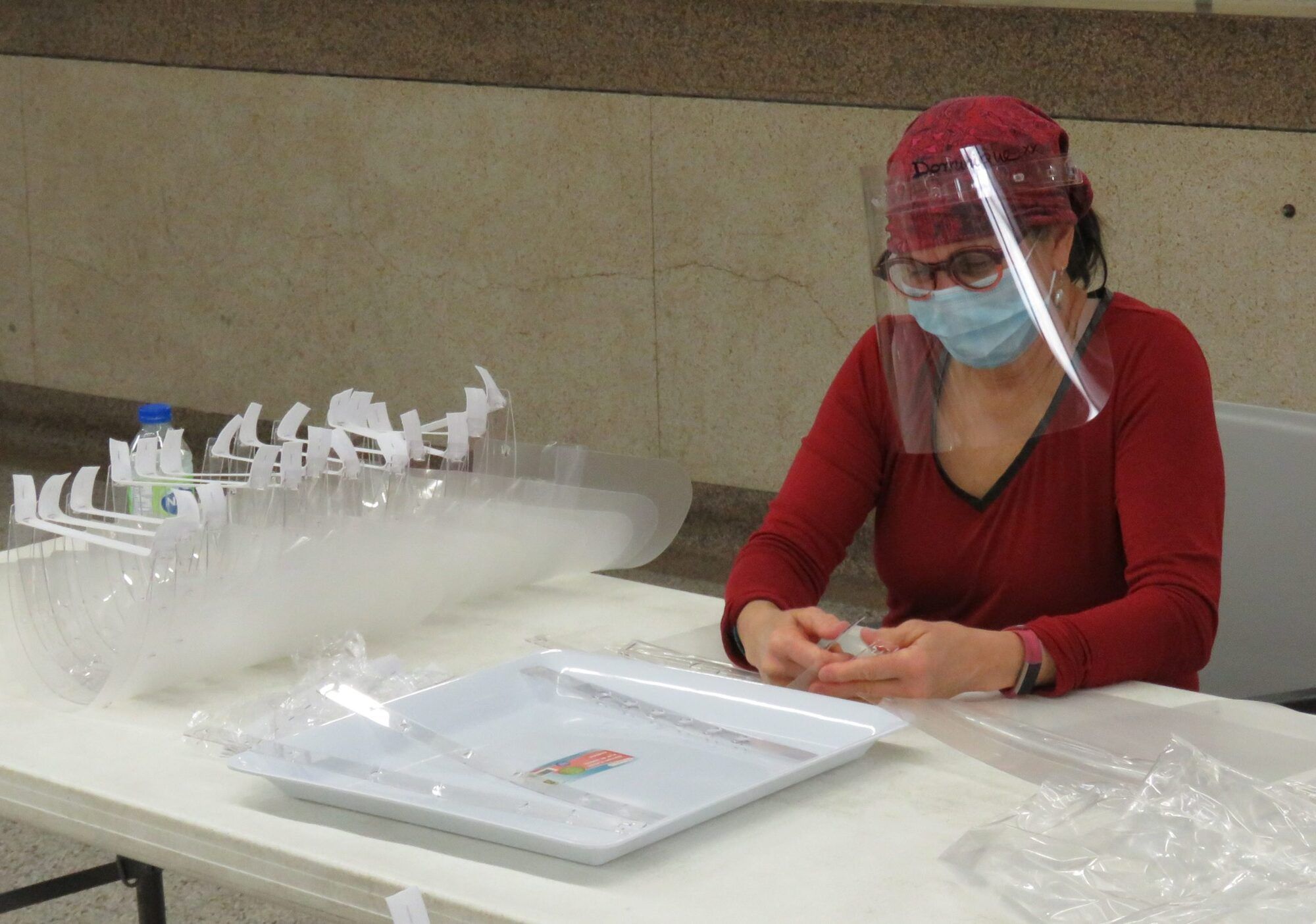 Le groupe est à l’œuvre environ trois demi-journées par semaine. Une fois leur vitesse de croisière atteinte, ils peuvent produire 600 visières par quart de travail.