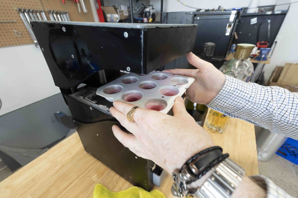 «La U1 permet de réaliser une seule forme, la demi-sphère. Avec les autres machines, la U2 et la Ufrost Pro, il est possible de faire des sphères complètes ou des cubes», explique Julien Michalk, qui peut fabriquer jusqu’à huit bouchées gelées par fournée.