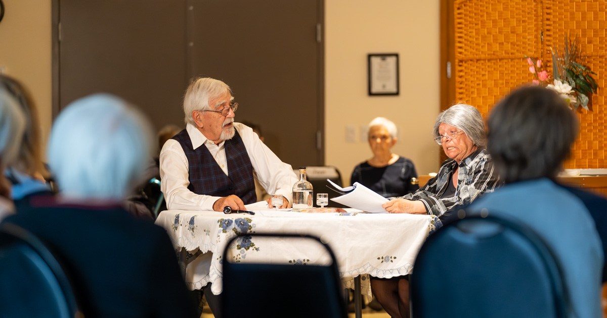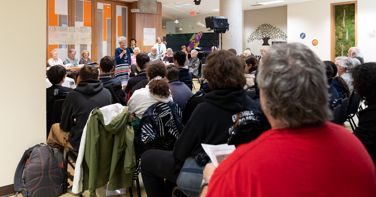 La metteuse en scène, Francine Lussier, également résidente, a conduit l’animation de l’événement et a pris le temps d’expliquer certains termes utilisés dans la pièce pour assurer la compréhension des élèves. Le texte en main pour donner un coup de pouce à leur mémoire, les comédien-ne-s ont joué avec leur cœur pour donner une belle expérience au public. Les rires se sont fait entendre.