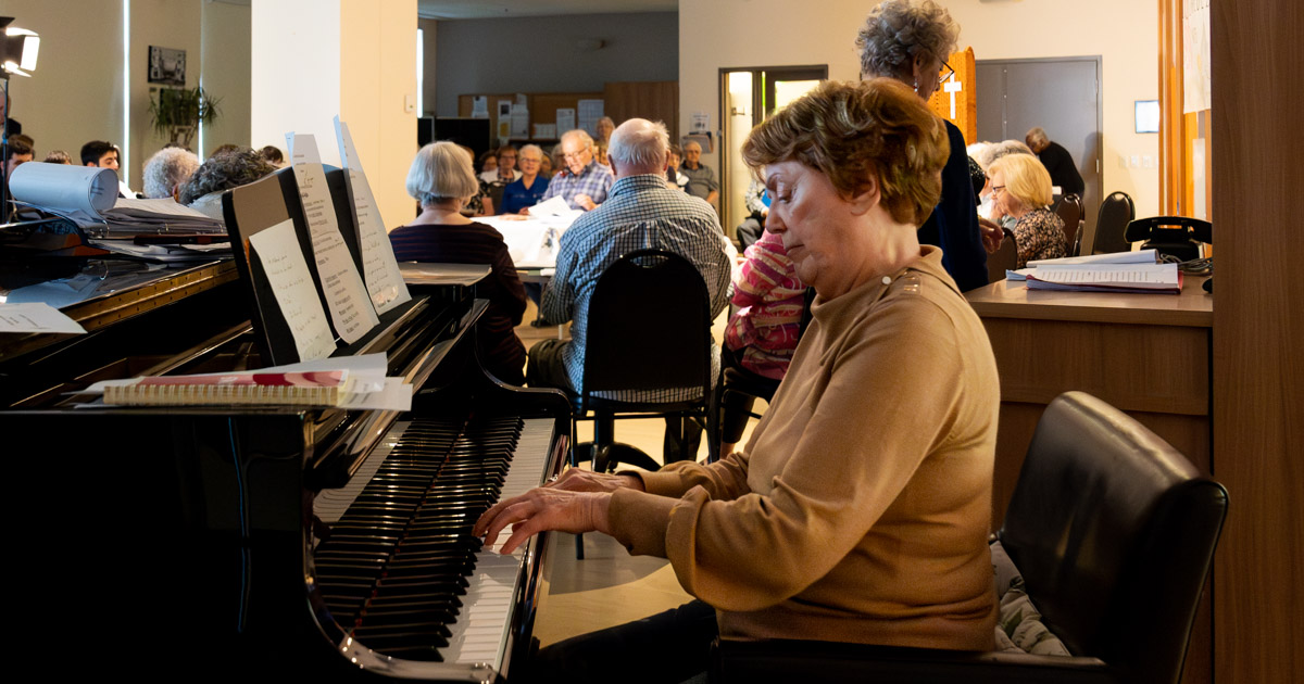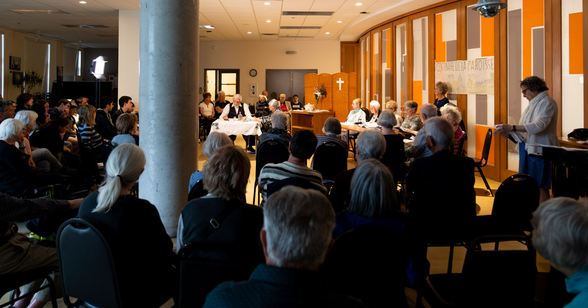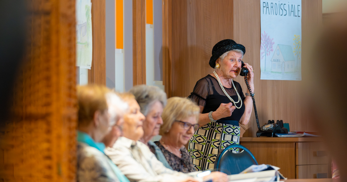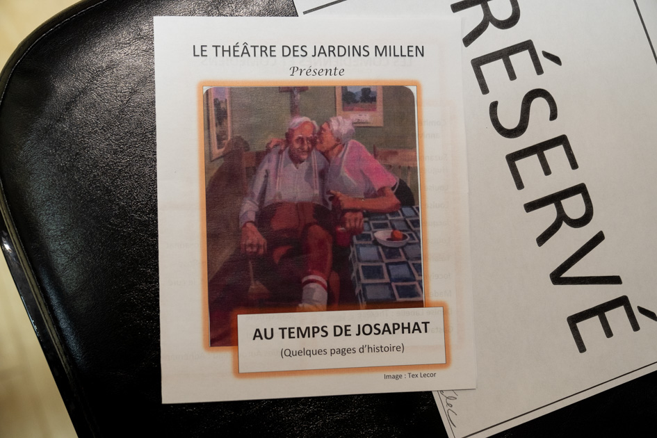 La troupe des Jardins Millen a été formée dès l’ouverture de la résidence en 2012 et est maintenant composée de 23 personnes âgées de 70 et 99 ans! Les comédiennes et comédiens jouent une ou deux pièces par année. La pièce choisie cette fois, «Au temps de Josaphat, quelques pages d’histoire», a été écrite par une des résidentes, Mme Nicole Camirand. Prenant place en 1975 dans la paroisse de Saint-Alexis au Québec, l’histoire offrait aussi des sauts dans le passé, où plusieurs coutumes de l’époque et moments historiques ont été abordés.