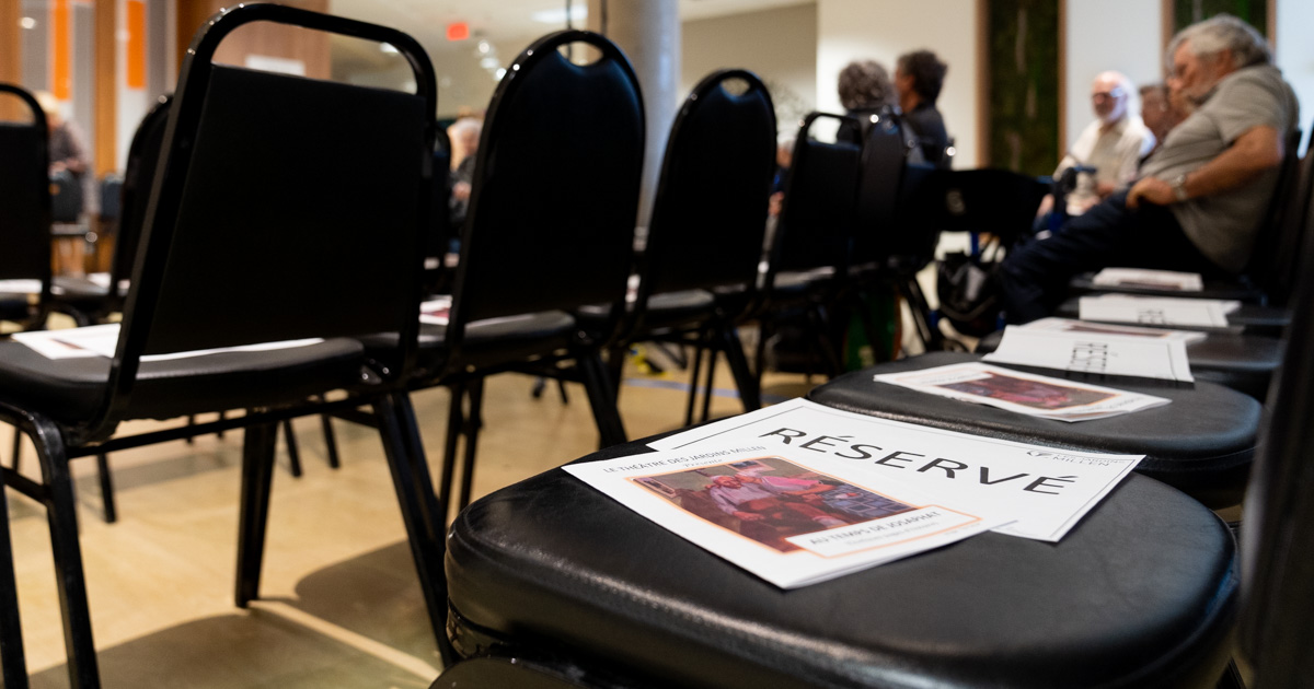 En janvier, les 27 élèves de l’option art dramatique de secondaire 3 de l’école Sophie-Barat ont présenté une pièce de théâtre devant une cinquantaine de résident-e-s des Jardins Millen. Le Journal des voisins avait d’ailleurs couvert cet événement. Pour cette seconde visite, les élèves étaient les invités d’honneur pour assister à la performance de la troupe de théâtre de la résidence.