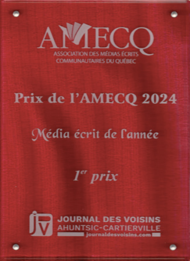 (Archives JDV)27 avril. Nous assistions au colloque annuel de l’AMECQ (Association des médias communautaires écrits du Québec). Votre journal a été honoré de trois prix: Meilleure nouvelle (Camille Vanderschelden), Meilleure critique (Hassan Laghcha) et Média de l’année 2024! Chapeau bas à l’équipe de la dernière cuvée, à l’éditeur Simon Van Vliet et au rédacteur en chef Stéphane Desjardins.