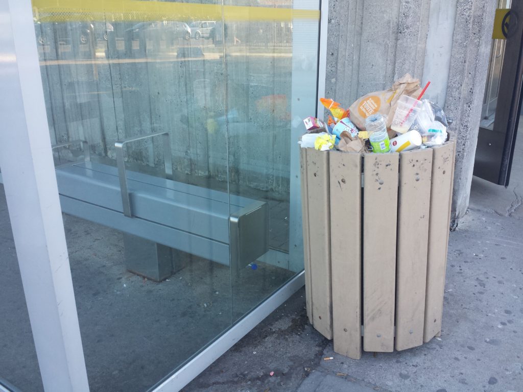 Poubelle à l’entrée du métro Sauvé (Photo: Isabelle Neveu)