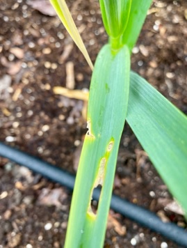 Cette année, la teigne est particulièrement présente dans la culture de l’ail. Si vous constatez des dommages sur vos feuilles, observez s’il y a encore des larves ou des «chenilles» sur vos feuilles. À ce stade de croissance, il y a peu de solutions qui s’offrent.
