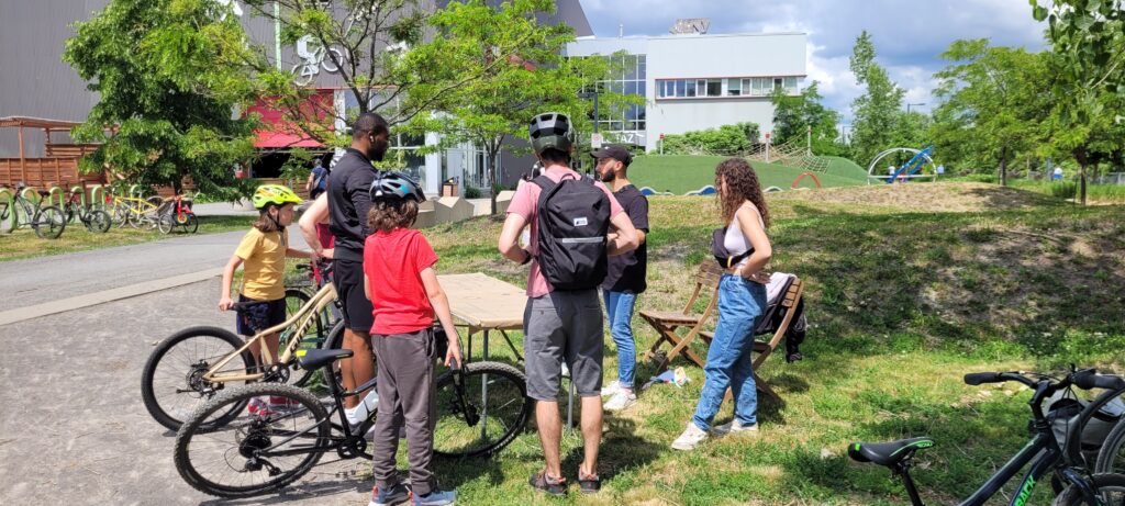 Puis, arrêt à l’étape 3, à l’Espace des Possibles, où des responsables de l’Atelier de réparation communautaire de vélos proposait une roue de vélo, munie de questions.