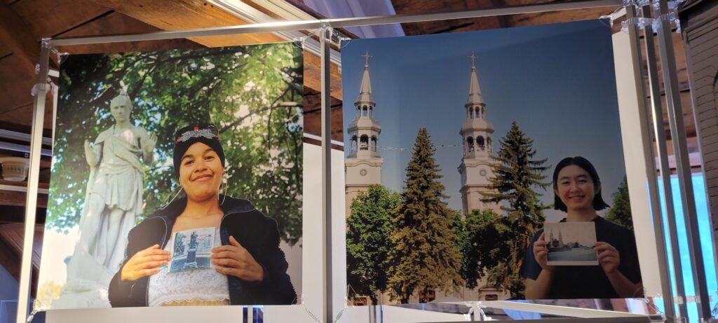 L’étape 5 faisait traverser le parc de l’île de la Visitation, pour s’arrêter à la Maison du Pressoir, où Jacques Lebleu, coordonnateur de la Société d’histoire d’Ahuntsic-Cartiervielle (SHAC), attendait les cyclistes avec une question à laquelle il fallait répondre. Les participants ont été nombreux à rentrer dans la maison (lors de la mini averse) pour découvrir les lieux, rencontrer l’animateur de la Maison du Pressoir et observer l’exposition temporaire «Broder ses racines».