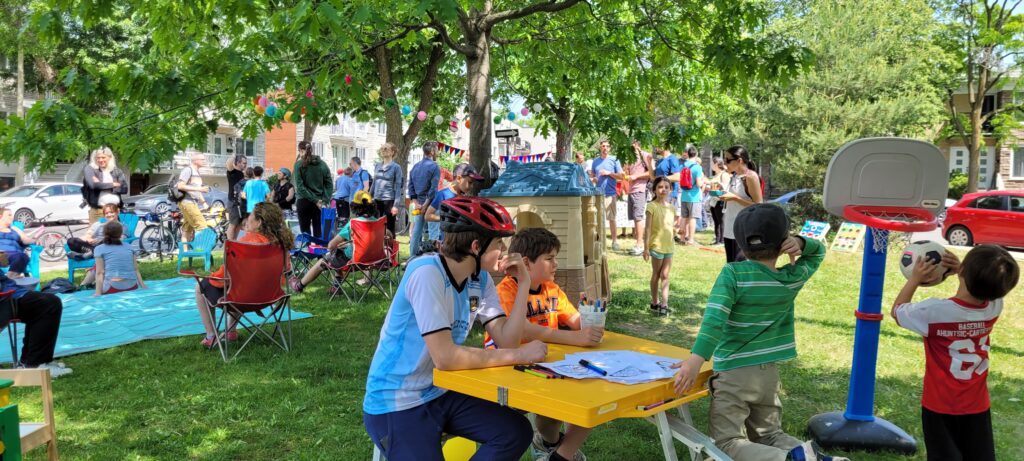 Les plus sportifs ont choisi de se rendre à la boutique Bicyclettes Montréal-Nord (et les responsables de Rêver Gouin), pour ajouter quelques kilomètres à l’expérience. Et finalement, l’accueil festif des participants se faisait à la Place Taché (tout près de la rue Fleury), où les attendaient l’un des organisateurs du rallye, Didier Haillot, ainsi que des voisins de la rue avec décorations, chaises, collations et rafraîchissements (offerts par l’épicerie Métro), des jeux pour enfants, des coloriages et de la musique.