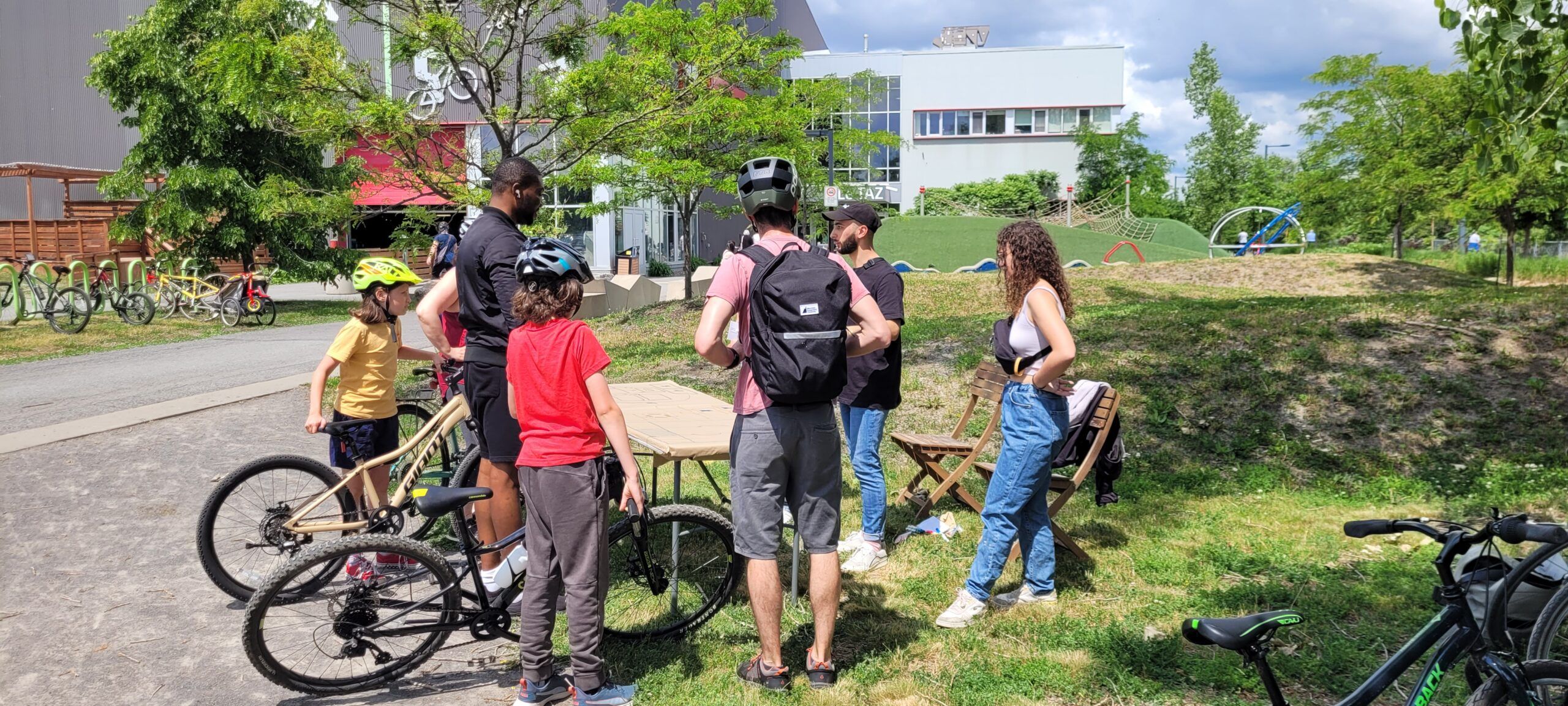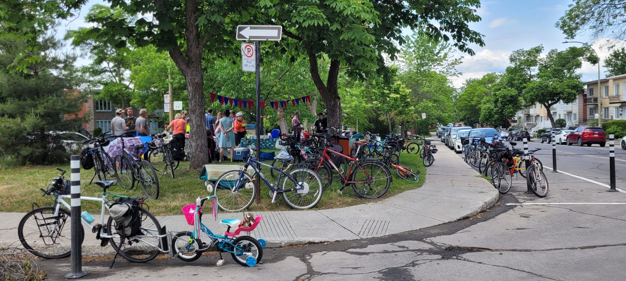 Les plus sportifs ont choisi de se rendre à la boutique Bicyclettes Montréal-Nord (et les responsables de Rêver Gouin), pour ajouter quelques kilomètres à l’expérience. Et finalement, l’accueil festif des participants se faisait à la Place Taché (tout près de la rue Fleury), où les attendaient l’un des organisateurs du rallye, Didier Haillot, ainsi que des voisins de la rue avec décorations, chaises, collations et rafraîchissements (offerts par l’épicerie Métro), des jeux pour enfants, des coloriages et de la musique.