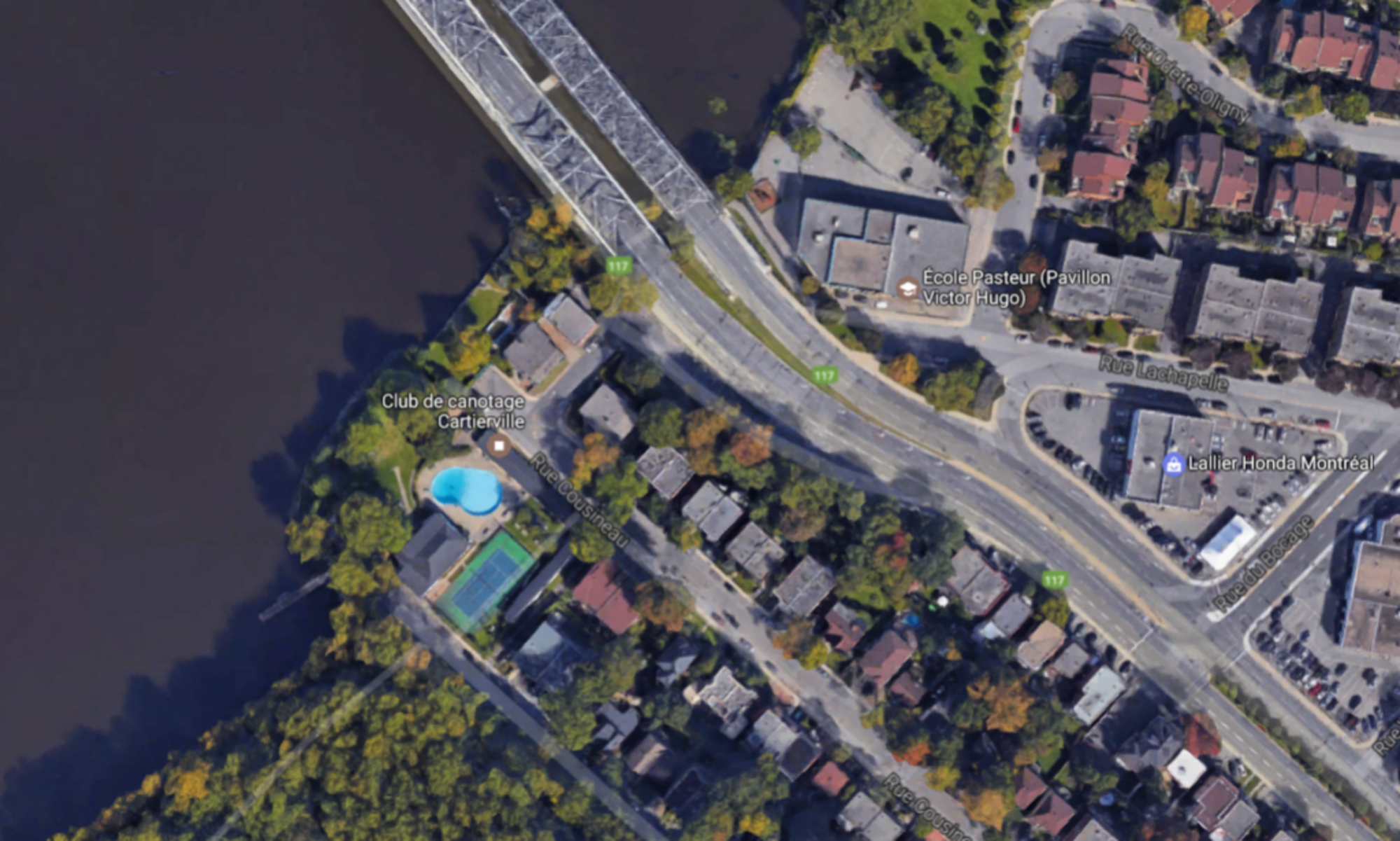 Emplacement du Club de canotage de Cartierville sur la rue Cousineau à proximité du pont Lachapelle. (Photo : Googlemaps)