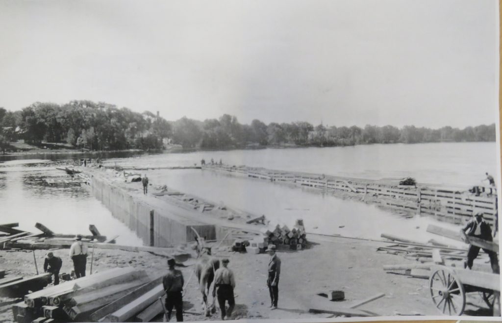 En réponse à une question du jdv sur la possibilité de retrouver des artéfacts à l’endroit où est présentement effectué l’enrochement à l’arrière du terrain des soeurs de la Miséricorde, le conseiller en environnement d’Hydro-Québec, André Burroughs qui a une formation en anthropologie, a répondu qu’à cause des travaux d’origine effectués lors de la construction du mur, en 1929, (voir photo ci-dessus fournie par Hydro-Québec), il serait peu probable de retrouver des vestiges intéressants et intacts.