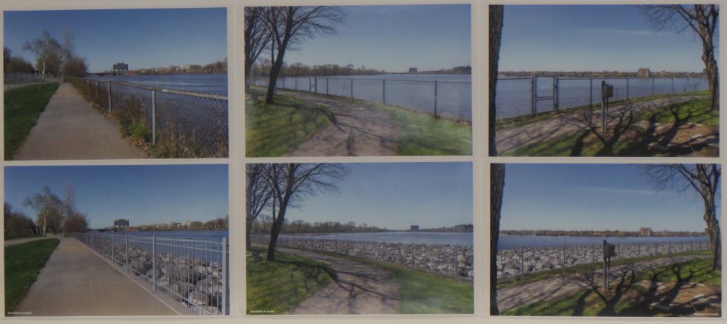 Photo de l’enrochement à l’arrière de l’école Sophie-Barat avec vue sur la résidence Berthiaume-du-Tremblay, l’ancien terrain des soeurs de la Miséricorde et l’église de la Visitation le 12 novembre 2018 (Photo : jdv – Philippe Rachiele)